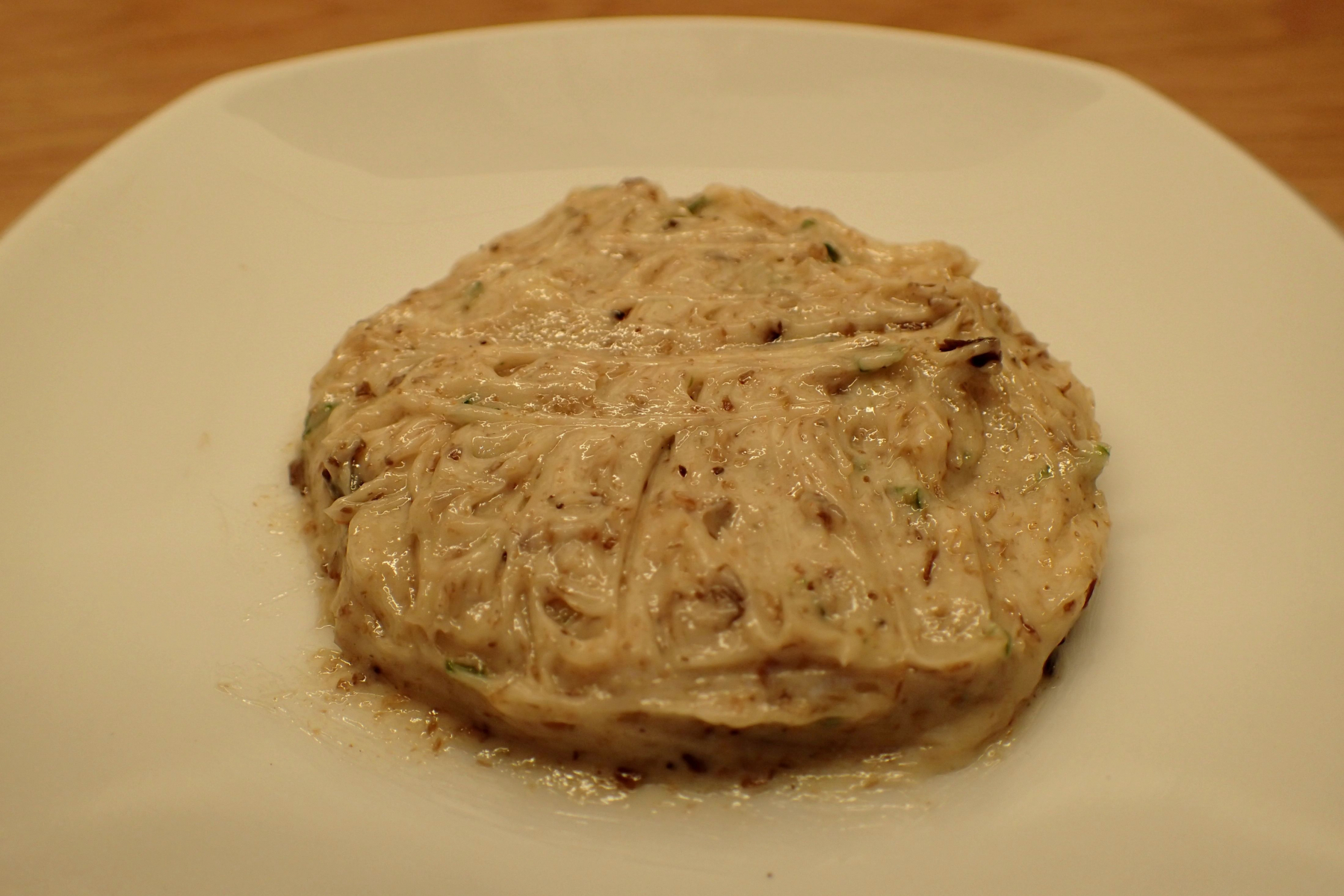 *Die Butter sollte beim Zusammenrühren auf keinen Fall vollständig schmelzen (dann war der Pilzbrei zu heiß): das Endprodukt, was dann entsteht, ist trotzdem genießbar, hat aber viel an Wert verloren.