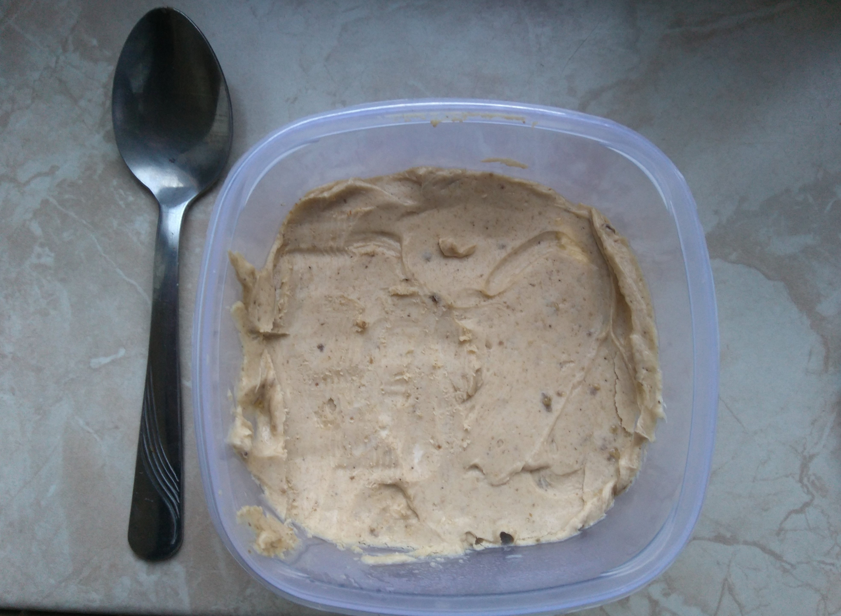 Diese Mischung in ein flaches Schälchen packen und ab in Gefrierfach /Schrank- in ungefähr einer halben bis 3/4 Stunde ist die Butter absolut fest und verwertbar. Hat man kein Gefrierfach /Gefrierschrank braucht das ganze etwas länger.
