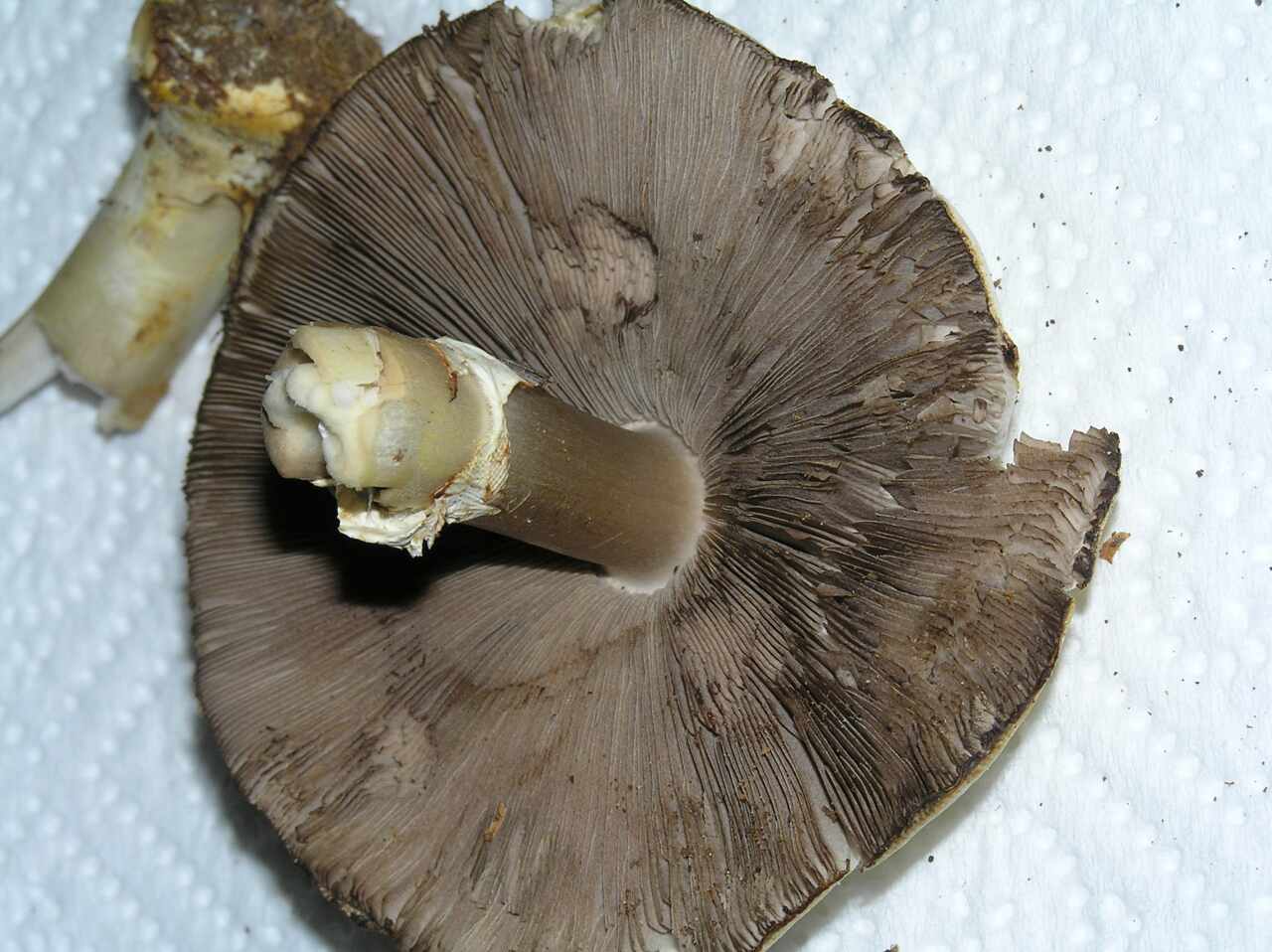 ---> Und wenn ich mir die Ausprägung der Stielbasis anschaue, tendiere ich zu A. essettei. Diese Art, habe das zig-fach überprüft, riecht eindeutig nach Marzipan/Bittermandeln und nicht nach Anis.