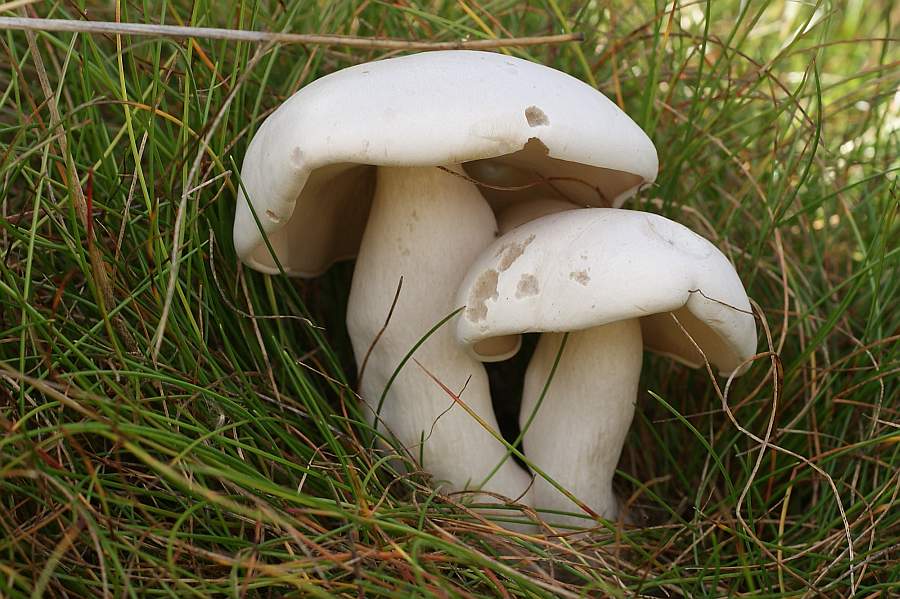 diesen stattlichen, ca. 11 - 12 cm hohen Pilz fand ich am 11.09. im Harz auf dem Kolonnenweg am Wurmberg. Ich habe keine Vorstellung, in welche grobe Richtung er einzuordnen ist, und würde mich daher über einen Richtungsweiser freuen. Aufgefallen ist er mir vor allem wegen seiner klobigen, bauchig verdickten Stiele. Die Lamellen waren sehr eng stehend und nicht rein weiß, sondern eher zart hellbräunlich.