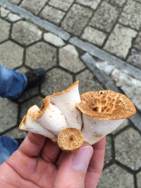 kann mir hier jemand sagen, wie dieser Pilz heißt? Wir haben jetzt schon ein paar Jahre Erfahrung, aber dieses Exemplar ist uns noch nicht über den Weg gelaufen. Der Pilz ist auf einem freiliegenden Ast gewachsen, vorwiegend Laubwald. Der Stiel, welcher direkt in eine "Trompete" mündet, ist schwammartig ausgebildet. Der Geruch ist angenehm und aromatisch pilzartig.