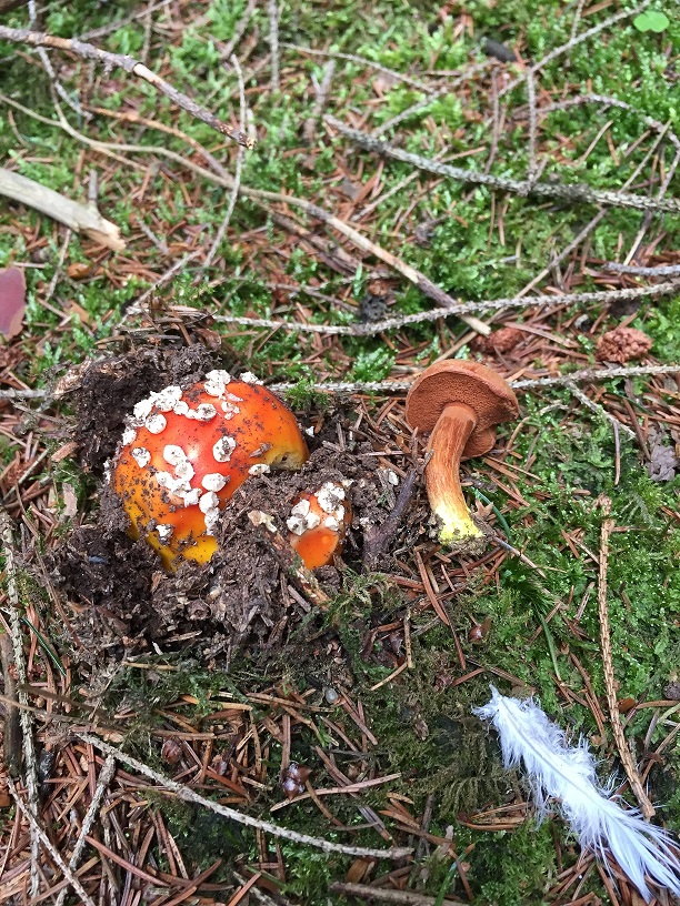 Junger Fliegenpilz mit einem (ich dachte Rotfußröhrling?)