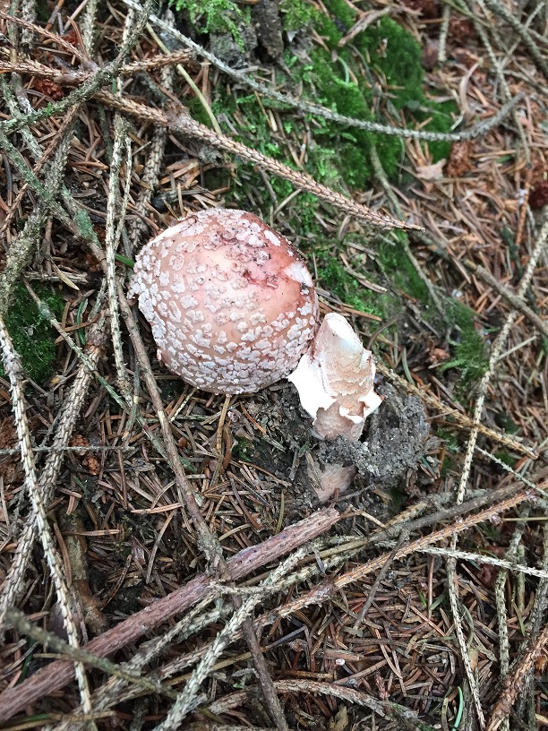 Junger Fliegenpilz mit einem (ich dachte Rotfußröhrling?)