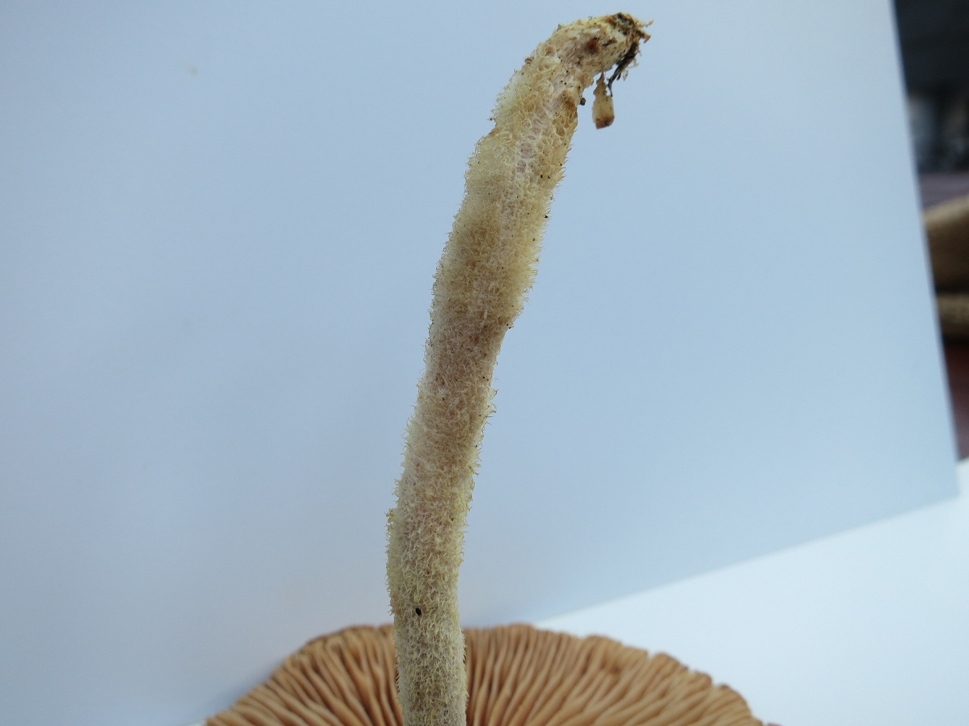 bisher bin ich nur überwiegend als passiver Nutzer in diesem Forums aufgetreten; heute würde ich euch gerne um Hilfe bitten. Bei einer Pilzexkursion am letzten Wochenende, die wir seitens des Naturwissenschaftlichen Vereins Wuppertal regelmäßig anbieten, fanden wir am Wegesrand in einem Mischwald auf saurem Boden (Hückeswagen/Bergisches Land) den abgebildeten Pilz. Ein Weißsporer, der durch seinen flauschigen/samtigen Stiel auffällt.