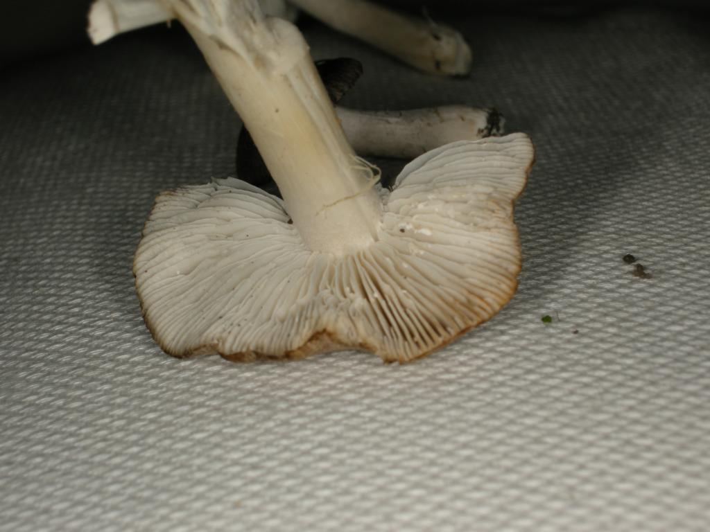 Lammellen: zuerst reinweiß schimmernd, dann zunehmend grau, angewachsen beim stiel leicht ausgebuchtet, minimal herablaufend.