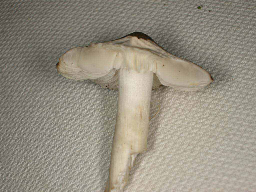 Stiel: weiß, längsfasrig, im alter möglicherweise hohl. eventuell verfärbt sich der stiel bei druck gelblich, kann aber auch schmutz gewesen sein.