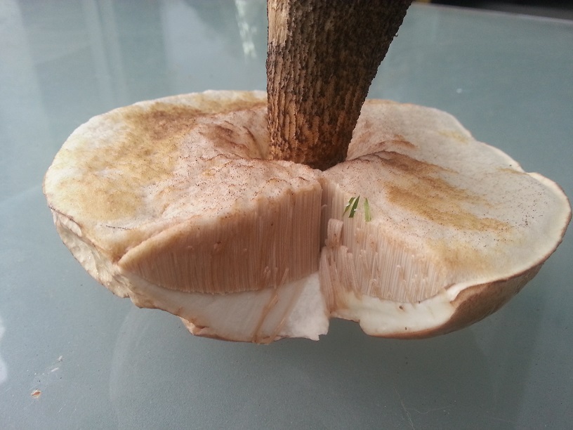 ist das wohl ein Birkenpilz? Oder ein bitterer Bitterling? Die Geschmacksprobe ergab keinen deutlichen Hinweis...beim Einschneiden von Kappe und Fuß verfärbt sich nichts klar deutlich...er wächst in fröhlicher Gruppenanordnung und mal allein bei uns im Garten unter den Birken...sind ganz schön viele da ![]()