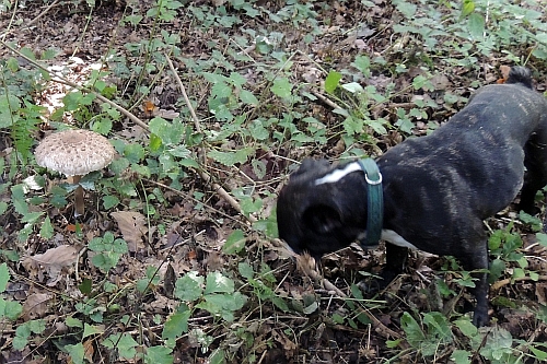 Na, jedenfalls findet man einige Schirmlinge entlang der Schneise, dort steht ein Dreiergrüppchen und dahinten nochmals drei einzelne, hier ein besonders Großer, ein wenig klamm - wo ist Ludwig? - aber nach dem dritten Schirmling wir dem Erebus langweilig, zu dumm, man hätte wenigstens den Fotoapparat mitnehmen können!