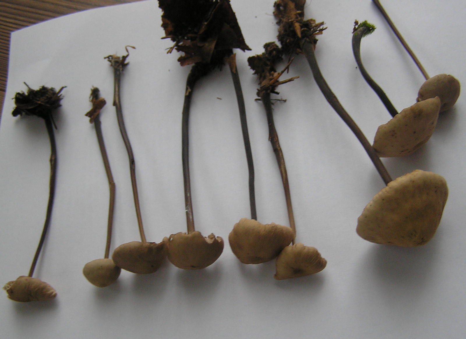 Die drei jetzt verlinkten Bilder zeigen allesamt Marasmius (Mycetinis) alliaceus, also den Saitenstieligen.