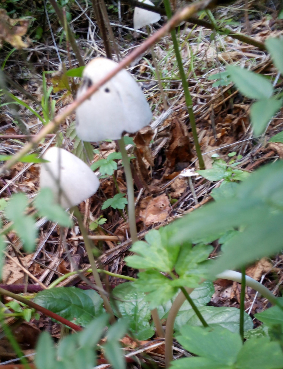 ich habe heute und gestern kleine Pilze mit sehr langen weißen Stielen ( < 10cm ) am Waldwegesrand gefunden.