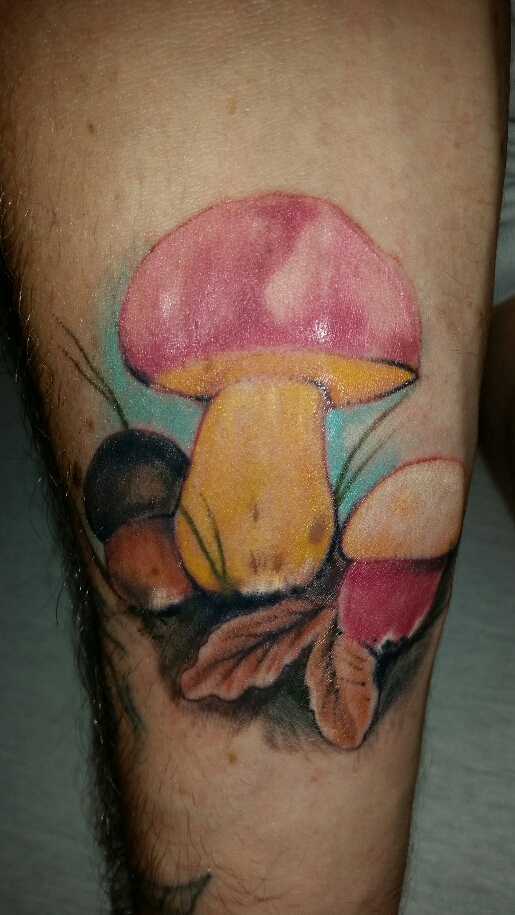 Vor einiger Zeit habe ich mich wieder stechen lassen. Dieses mal sollte es aber etwas besonderes sein, ein Pilztattoo, welches ich immer schon mal machen lassen wollte. Bild lade ich mit Handy hoch, hoffe Qualität ist einigermaßen gut und man erkennt was ![]()