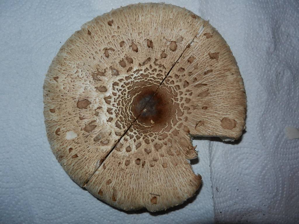 Beim Mittleren und Großen Fruchtkörper ist die Farbe weiß-bräunlich mit braunen Schuppen, deren Dichte zum Hutrand hin abnimmt.