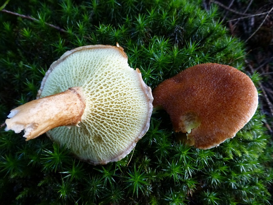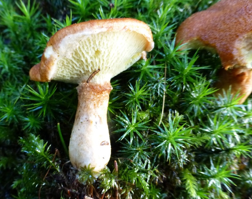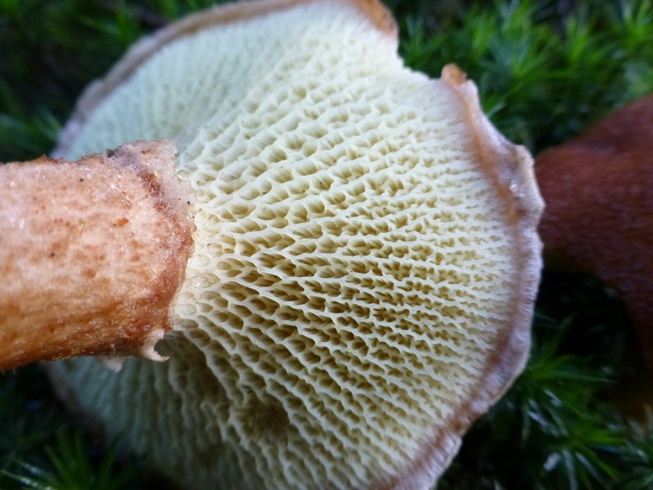 Der Hutrand war eingekrempelt, die Poren gingen schön als Kontrast in den Stiel über, und ich meine, so etwas wie einen kleinen Stielring erkennen zu können.