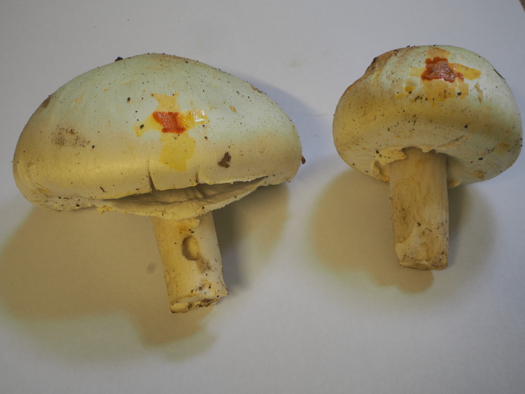 Nun lese ich bei Rita Lüder "Grundkurs Pilzbestimmung" heraus, dass diese Kreuzreaktion nur bei gilbenden Champignons funktionieren soll.