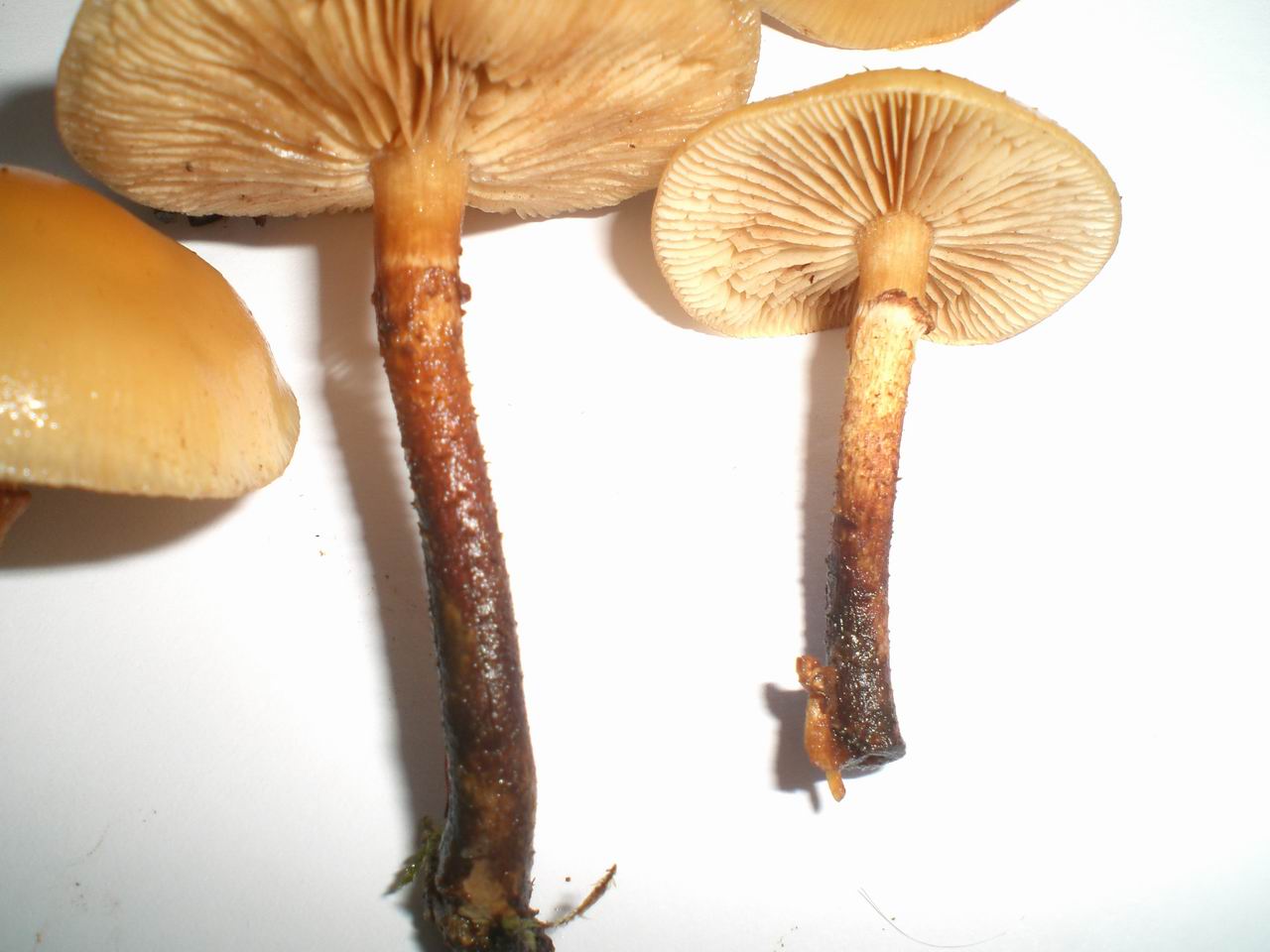 Würde auf irgendwelche Schwefelköpfchen und evtl. Glimmertintling tippen, aber hab da wenig Erfahrung. Sind beide auf demselben Baumstumpf gewachsen wie die vermeintlichen Stockschwämmchen.