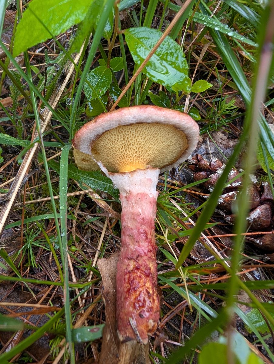 1 - 3 vermutlich Gold-Röhrling, oben schleimig, in großen Gruppen vorkommend, Röhren sehr grob