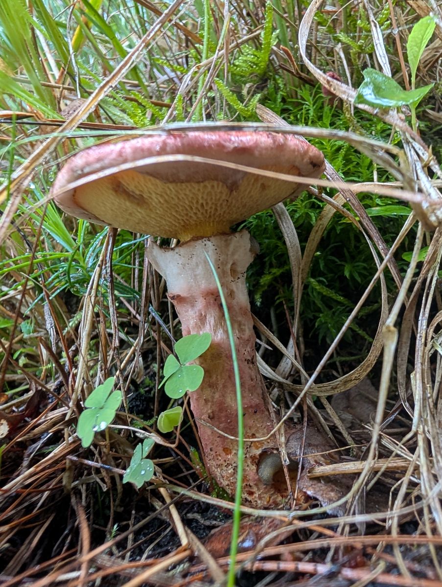 1 - 3 vermutlich Gold-Röhrling, oben schleimig, in großen Gruppen vorkommend, Röhren sehr grob