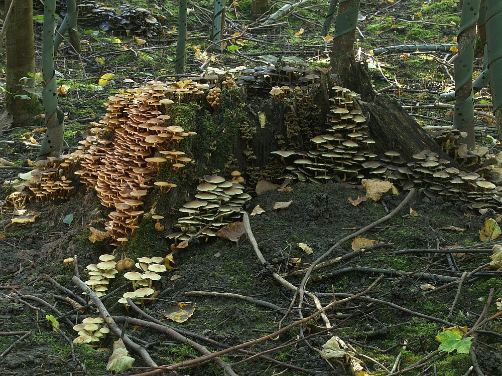 Stockschwämmchen und Grünblättrige Schwefelköpfe einträchtig beieinander :Kuschel: Als kleine Warnung für zu eifrige Sammler. LG Karl