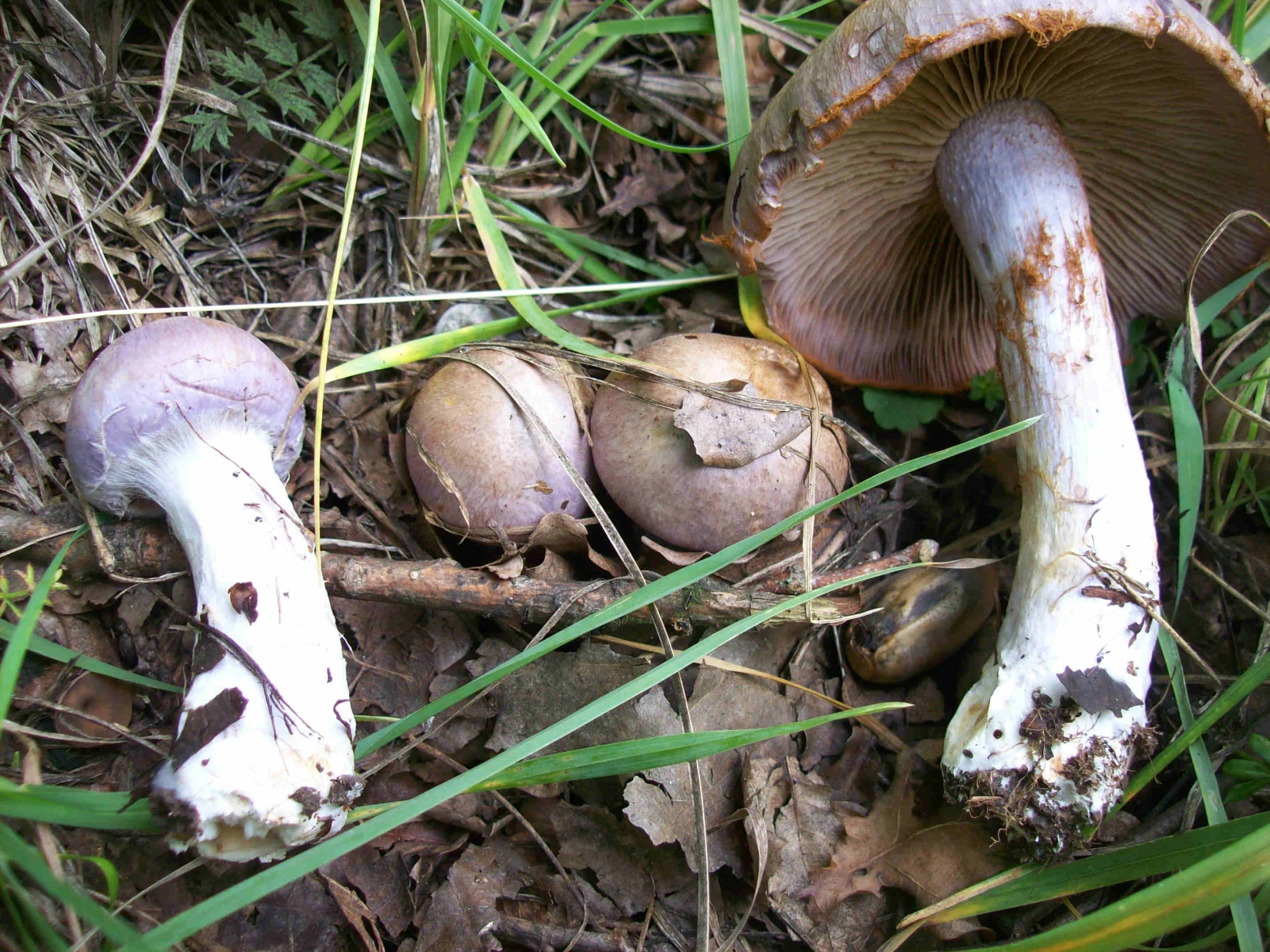 Hut: Jung bläulich violett, älter bräunlicher. Faserig, aber nicht schleimig. Bis 10 Zentimeter Durchmesser.