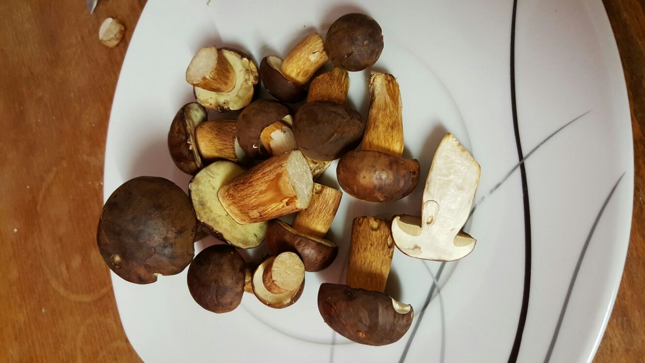 Waren heute im Wald spazieren und da haben wir paar pilze mitgenommen.