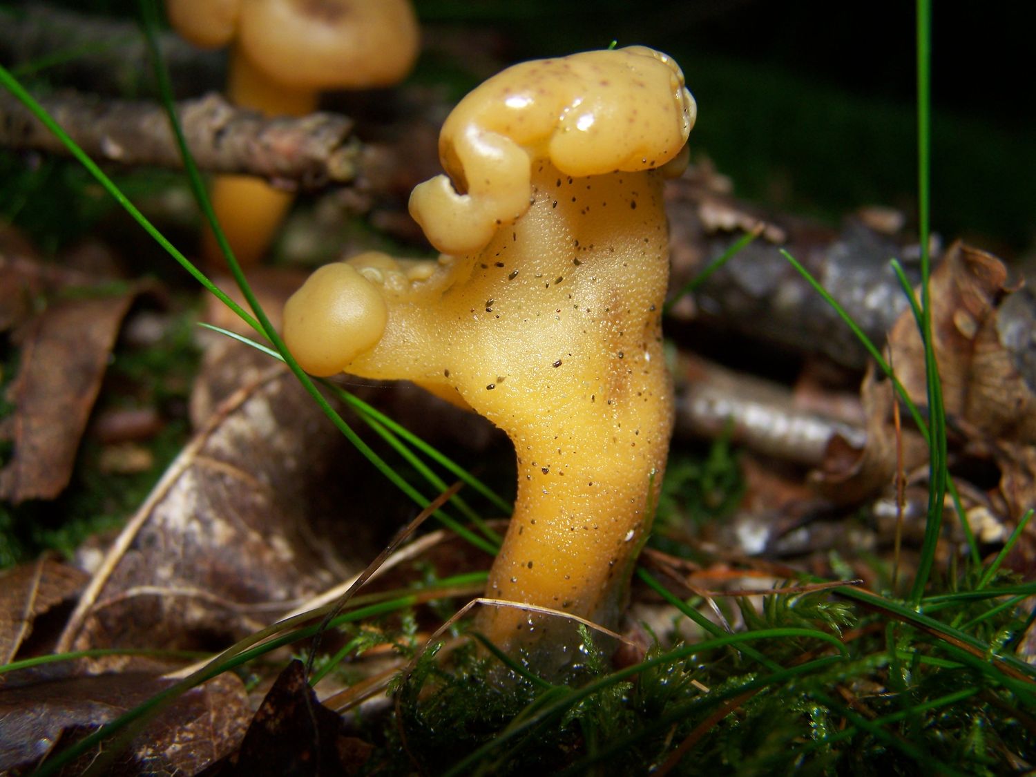 Ansonsten Geruch, Sporenpulverfarbe auf den untenliegenden Hüten, Knorpelartiges Fleisch, zäh und elastisch, passt alles.