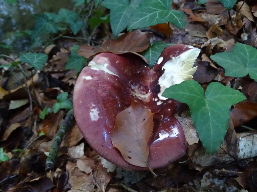 • Ist ja ein ziemlich weites Feld - aber beim ersten bin ich relativ optimistisch richtig zu liegen - Russula olivacea - Rotstieliger Ledertäubling. Relativ kräftig, rötlicher Hut, gelbliche Lamellen, die ins Rot gehenden Schneiden zur Außenkante sind zu erahnen, der ritterlingsartige Burggraben zur Abgrenzung zum kleineren R. amoena - passt eigentlich alles, oder?