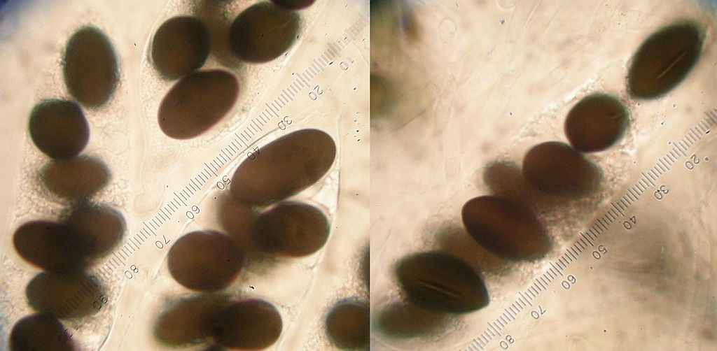 Weitere Proben mit einem höheren Anteil an ausgereiften Sporen ergaben Maße von 35,6-41,1 x 19,8-26,07 µm.