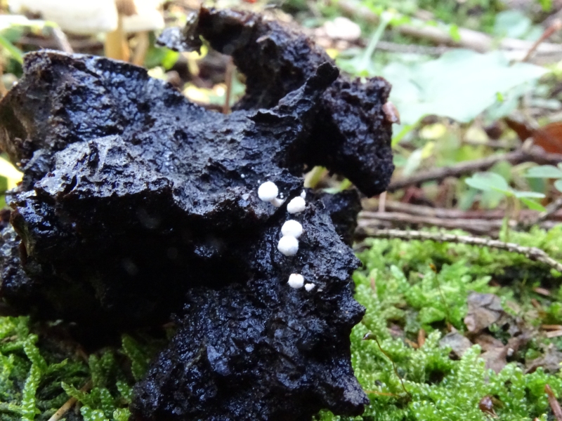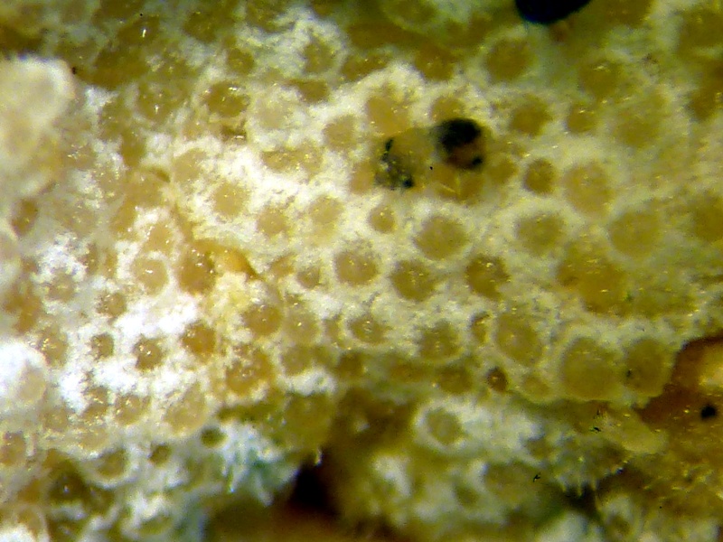 Den Saftporling hatte ich vor lauter Pilzen schon ganz vergessen. Dabei war ich doch ordentlich überrascht, als ich mit der Lupe gerade so diese Kleinstpilze sehen konnte. Ich bin gespannt, ob da jemand eine Idee hat. Ich persönlich erkenne da nur Pac-Man. ;)