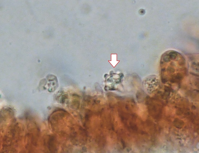 Sobald man was Stacheliges findet, ist das schon praktisch. Denn offenbar prägen sich die Stacehln erst bei wirklich vollreifen Fruchtkörpern aus. Nicht vollreife haben zwar dann auch freie Sporen, nur sind die halt nicht stachelig.