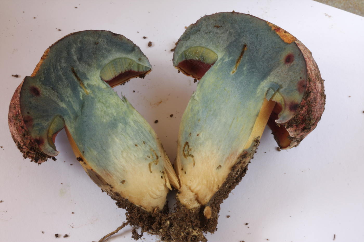 Mich hat einfach die Blaufärbung, die rote Röhrenschicht und den gelblichen glatten Stiel irritiert.