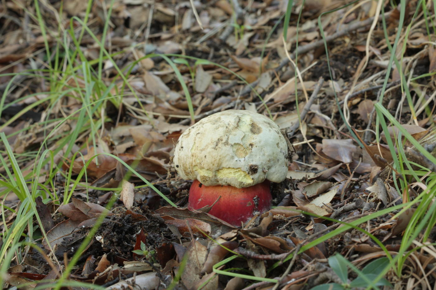 Unter einer Steineiche. Ein junges Exemplar, und ein schon sehr angefressenes ältliches. Bei keinem war ein Stielnetz zu erkennen - beim alten war der Stiel fast komplett weggefressen, beim jungen noch vom Hut verborgen. Keinen habe ich angeschnitten, ich wollte sie schonen, daher kann ich auch zur Blaufärbung nichts sagen. Ansonsten stimmen aber alle Merkmale, und es waren keinerlei Rosatöne im Hut erkennbar, auch nicht beim alten Exemplar, also kann ich B. rhodoxanthus, legaliae und rubrosanguineus und so weiter ausschließen.