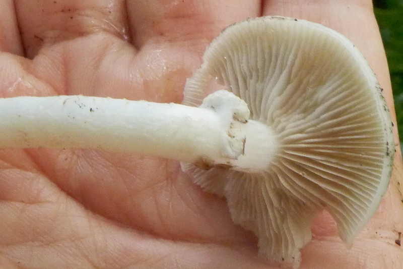 Lamellen hell, mit braunen Flecken, leicht ausgebuchtet angewachsen