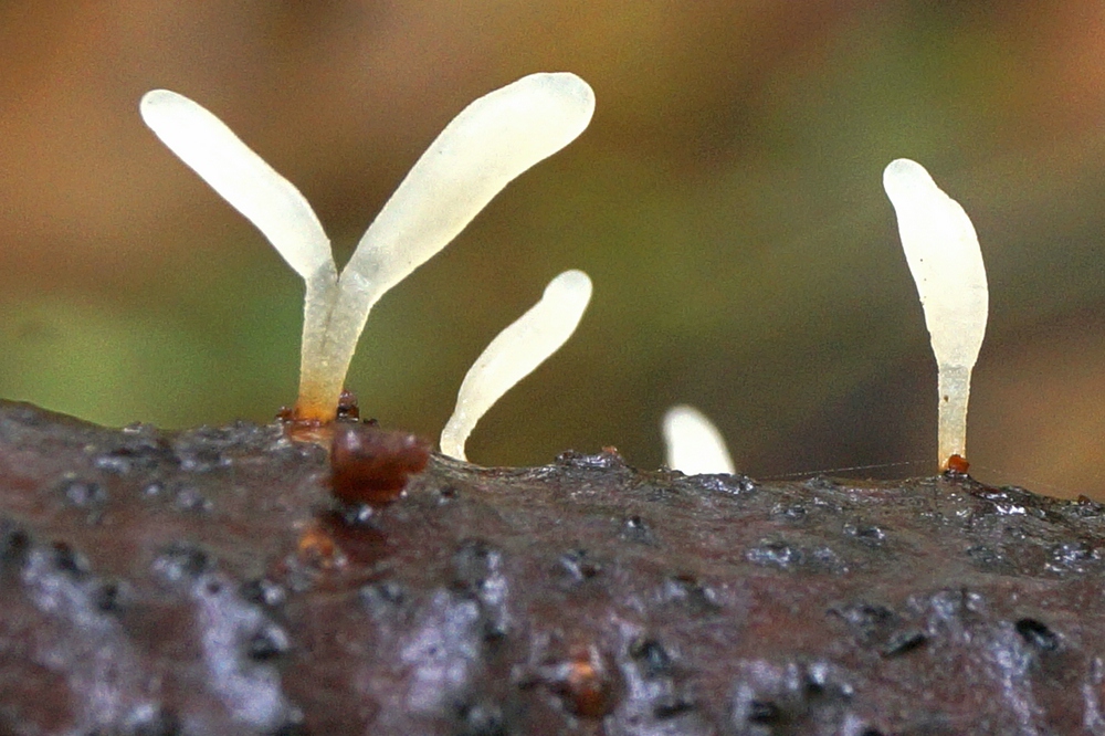 Ich habe heute diese Typhula gefunden, in einem Laubbruchwald ( Buchen, Eschen, Pappeln, Erlen ) an Holz. Komm aber bei der Bestimmung nicht weit, erst dachte ich an Typhula spathularia, da an Holz vorkommend. Dafür gefallen mir aber die Sporenmaße ( Die Länge ist Okay, aber die Breite... ) Nicht wirklich, desweiteren werden die Sporen in Lugolscher Lösung nicht grau oder blau, sondern verfärben sich wie dass Lugol ( inamyloid? Leider kein Bild gemacht) Auch die Stielhaare, wenn man denn mal welche findet ( sollen bei T. spathulata reichlich sein ) sehen nicht wirklich so aus wie in der Vorgabe. Rein makroskopisch hätte ich ja keine Zweifel ( Habitus, Wuchsort an Holz, Sklerotium unter der Rinde in Braun oder ?schwarz? )
