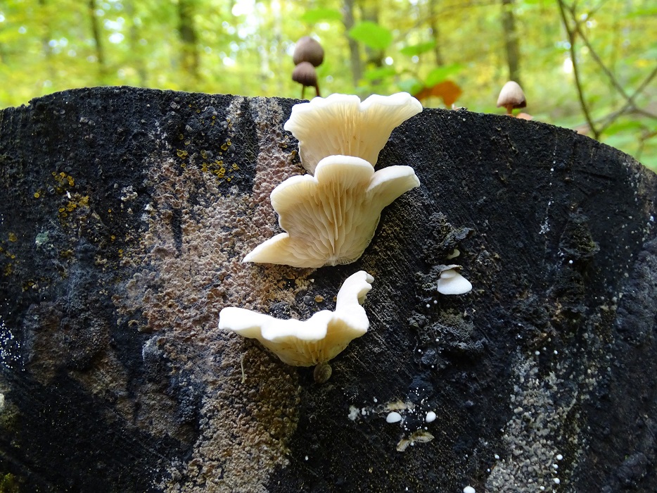 - Pleurocybella porrigens - Ohrförmiger Seitling, dieser wird aber eher von Nadelholz angegeben - hier ist das eindeutig Buche