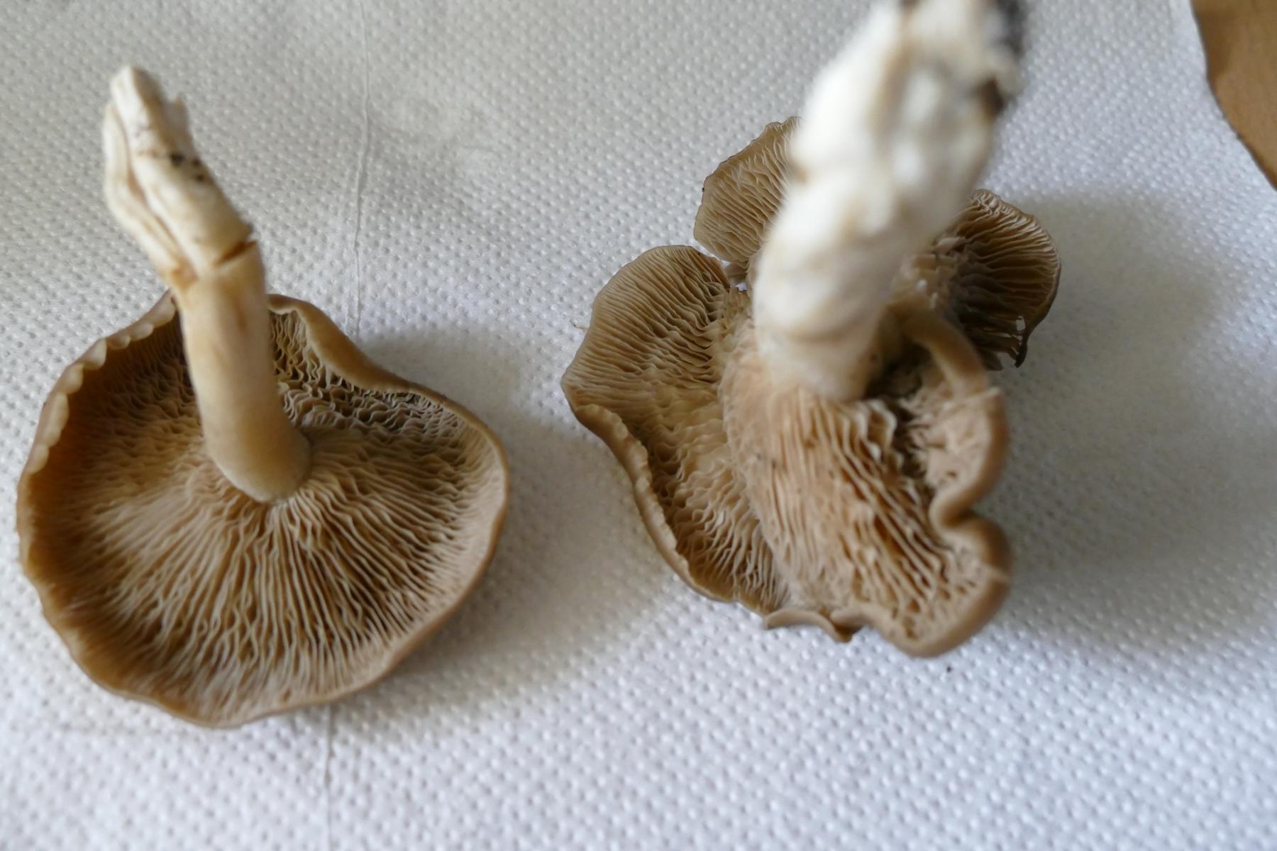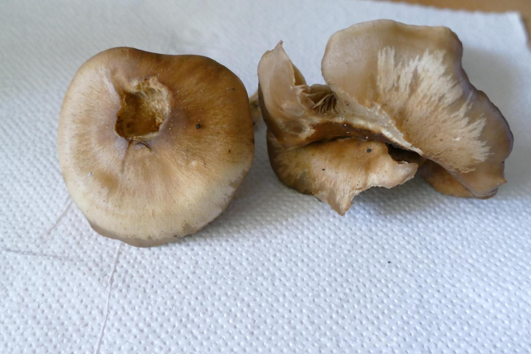 Juengeres Exemplar: 7 cm breit, Stiel 6 cm; Aelteres Exemplar 9 cm breit, Stiel 8 cm