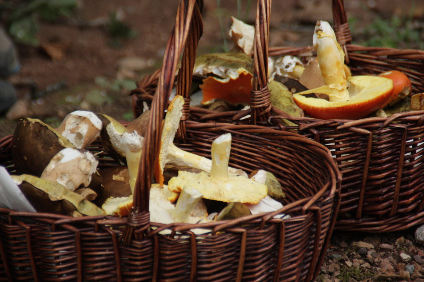 21. & 22. Mit den gefüllten Körben ging's dann in eine Taverne, wo erstmal kräftig für alle Teilnehmer Pilze geputzt und gleich gebraten und gegrillt wurden. Himmlisch! Sowohl rohe Kaiserlinge, ganz jung, aufgeschnitten, Zitrone und ein bisschen Salz drüber. Fantastisch! Und fast noch besser: die Hüte von Kaiserlingen und Perlpilzen vom Grill... Fotos vom Essen gibt's nicht - so schnell war alles weggeputzt! Aber ich habe hier noch einen halben Korb Kaiserlinge rumstehen, die werden morgen verkostet, und dann gibt's einen erneuten Bericht. Und von den Kräuterseitlingen... ;)