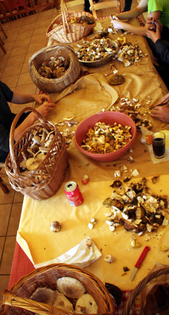 21. & 22. Mit den gefüllten Körben ging's dann in eine Taverne, wo erstmal kräftig für alle Teilnehmer Pilze geputzt und gleich gebraten und gegrillt wurden. Himmlisch! Sowohl rohe Kaiserlinge, ganz jung, aufgeschnitten, Zitrone und ein bisschen Salz drüber. Fantastisch! Und fast noch besser: die Hüte von Kaiserlingen und Perlpilzen vom Grill... Fotos vom Essen gibt's nicht - so schnell war alles weggeputzt! Aber ich habe hier noch einen halben Korb Kaiserlinge rumstehen, die werden morgen verkostet, und dann gibt's einen erneuten Bericht. Und von den Kräuterseitlingen... ;)