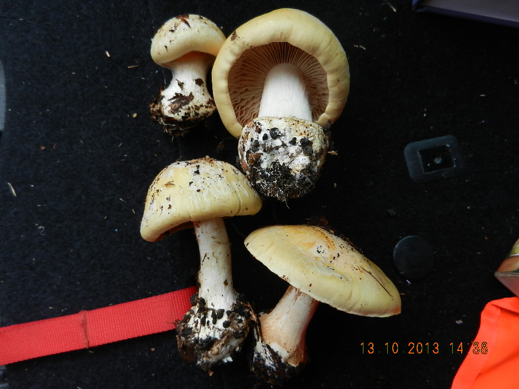 Aber: Cortinarius varius ist raus, weil: Wo sind die violettblauen Lamellen? Und warum ist der Stiel nicht weiß und die Knolle gerandet?