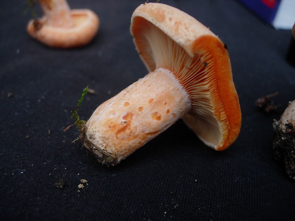 Orange Milch erst nach einiger Zeit (15-30 Min.) Rot, Fleisch un Milch nach einige Stunden Grün, keine grübchen am Stiel. Bei Fichte.