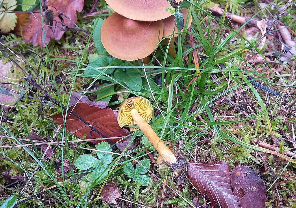 Vor Ort war meine spontane Eingebung, das ist ein Kaffebrauner Gabeltrichterling. Nicht reingebissen, nicht daran geschnüffelt, schon gar kein Schnittbild aufgenommen.