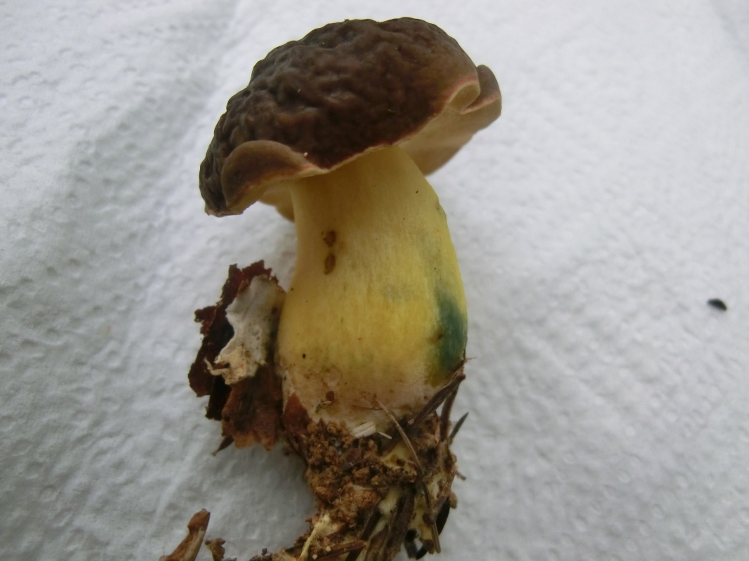 1. ein feinporiger, ca. 8-10 cm großer Röhrling der mir richtig bekannt vorkommt (ich glaube denselben hatte Eljota-im-Walde auch gefunden). Er stand im Mischwald und blaute wenn man ihn ärgerte. Geruch angenehm. Ich komme aber nicht auf den Namen...... kann es ein Xerocomellus pruinatus sein?