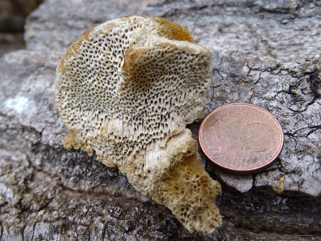 Ich würde nach wie vor die Farbe des Fleisches für relevanter als die Farbe des Hutfilzes halten und den als Coriolopsis trogii (Blasse Borstentramete) benennen wollen.