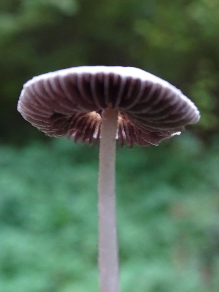 Der gehört zu den Faserlingen / Mürblingen (Gattung: Psathyrella). Das ist eine extrem schwierige Gattung mit in Europa sicher an die 200 Arten, die oft nur mit mikroskopischen Merkmalen zu bestimmen sind.