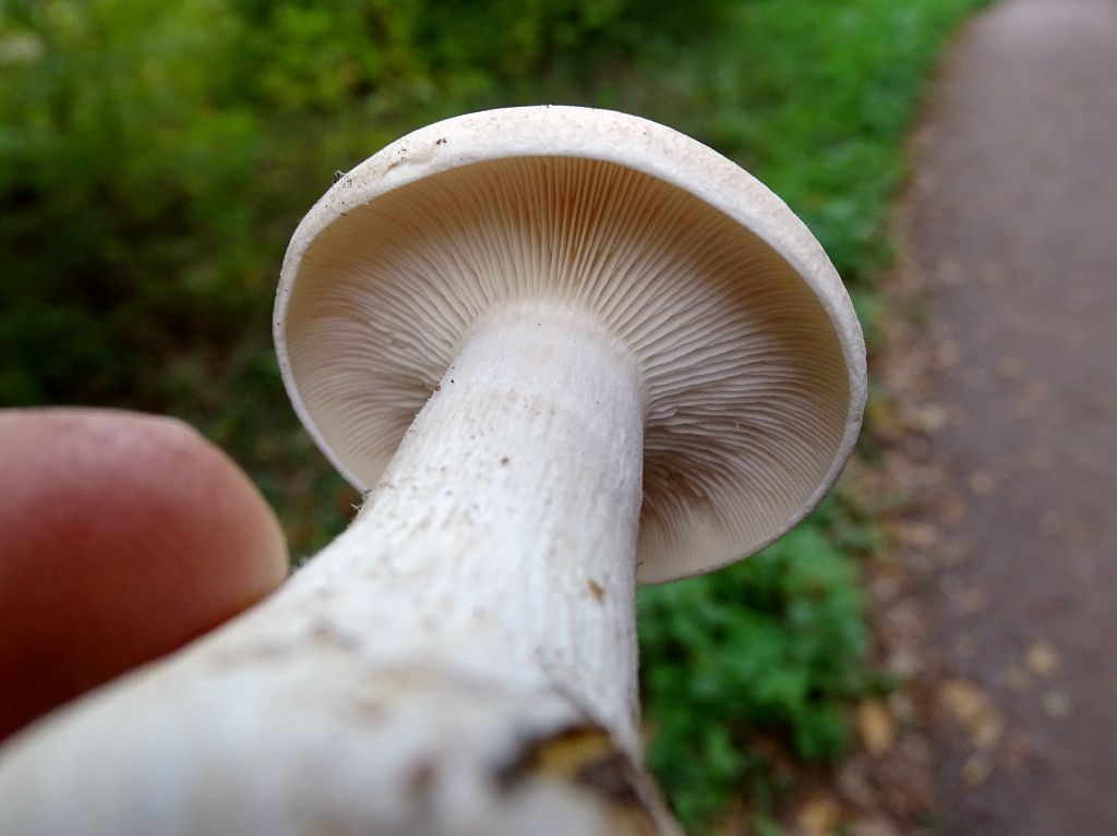 Ich kenne ihn nur mit schlankerem geraden Stiel, jung mit deutlichem Buckel und älter erst ausgebreitet, dann trichterförmig, auch dann noch meist mit sichtbarem Buckel. Riecht auch nicht unangenehm. Gibts bei uns in günstigen Jahren wie Sand am Meer. Meines Wissens ein typischer Kalkpilz. Habe ihn aber auch schon in Nichtkalkgebieten gefunden an Wegen mit kalkhaltigem Schotter.