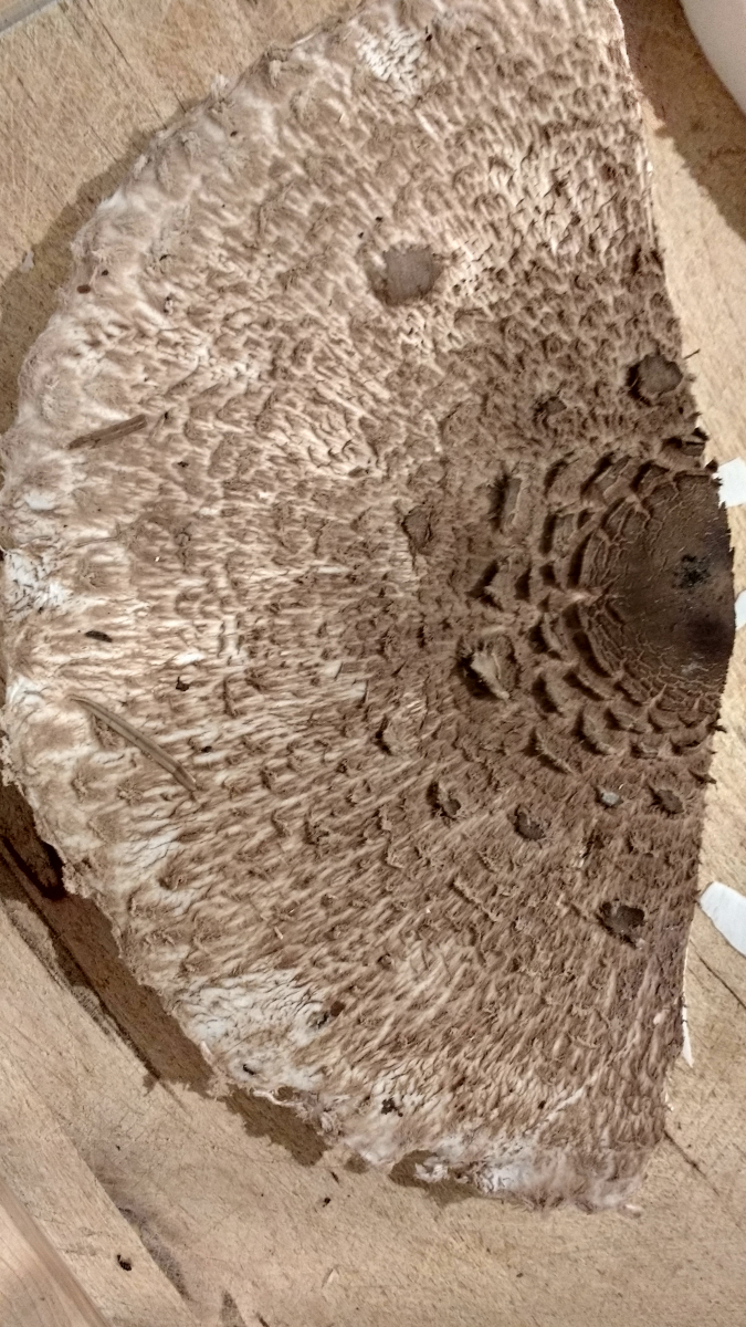 Das ist ein typisches Merkmal für dem Parasol. Das gesamte Fleisch des Parasol, also Stiel, Lamellen etc. rötet leicht (rosa) im Gegensatz zu giftigen kleinen Schirmlingen und im Gegensatz zu safranfarbenen Schirmlingen.