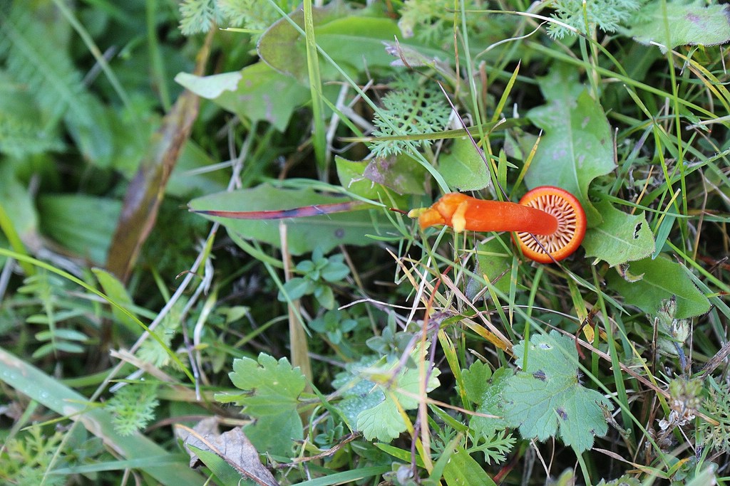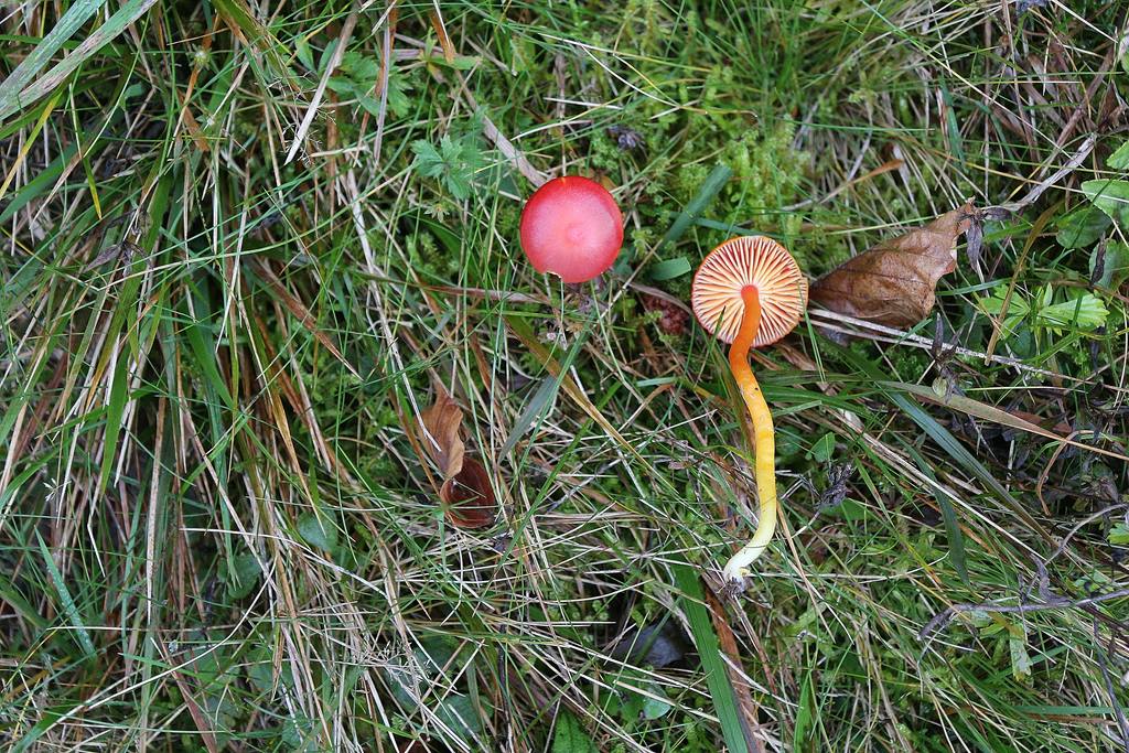 Den Stumpfer Saftling, Hygrocybe chlorophana machen mir die PdS mit Gelber Saftling, Hygrocybe flavescens madig.