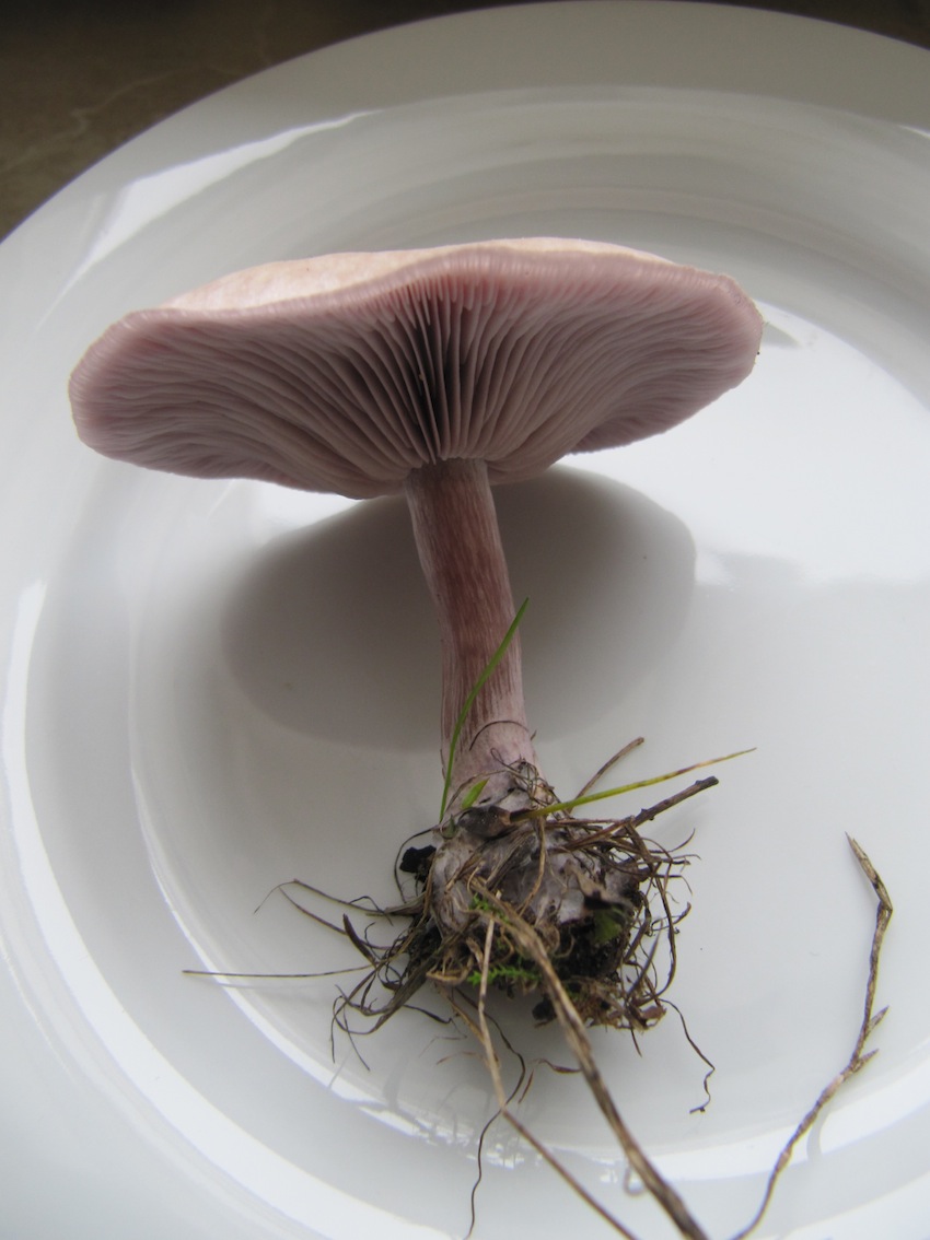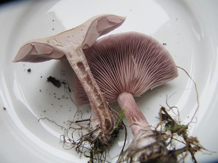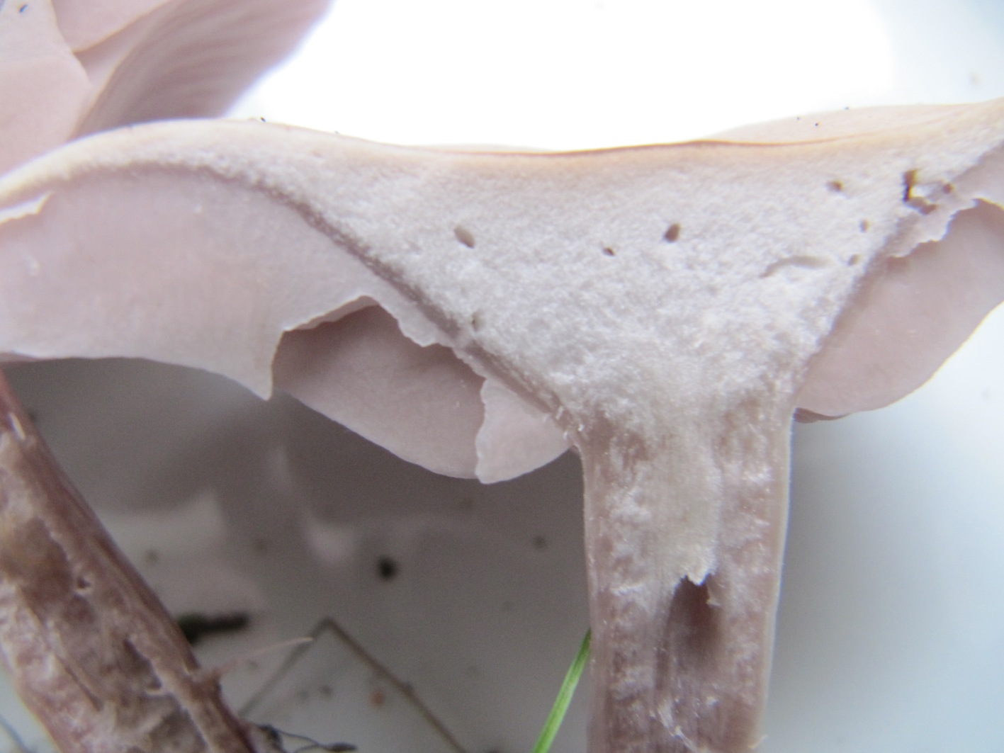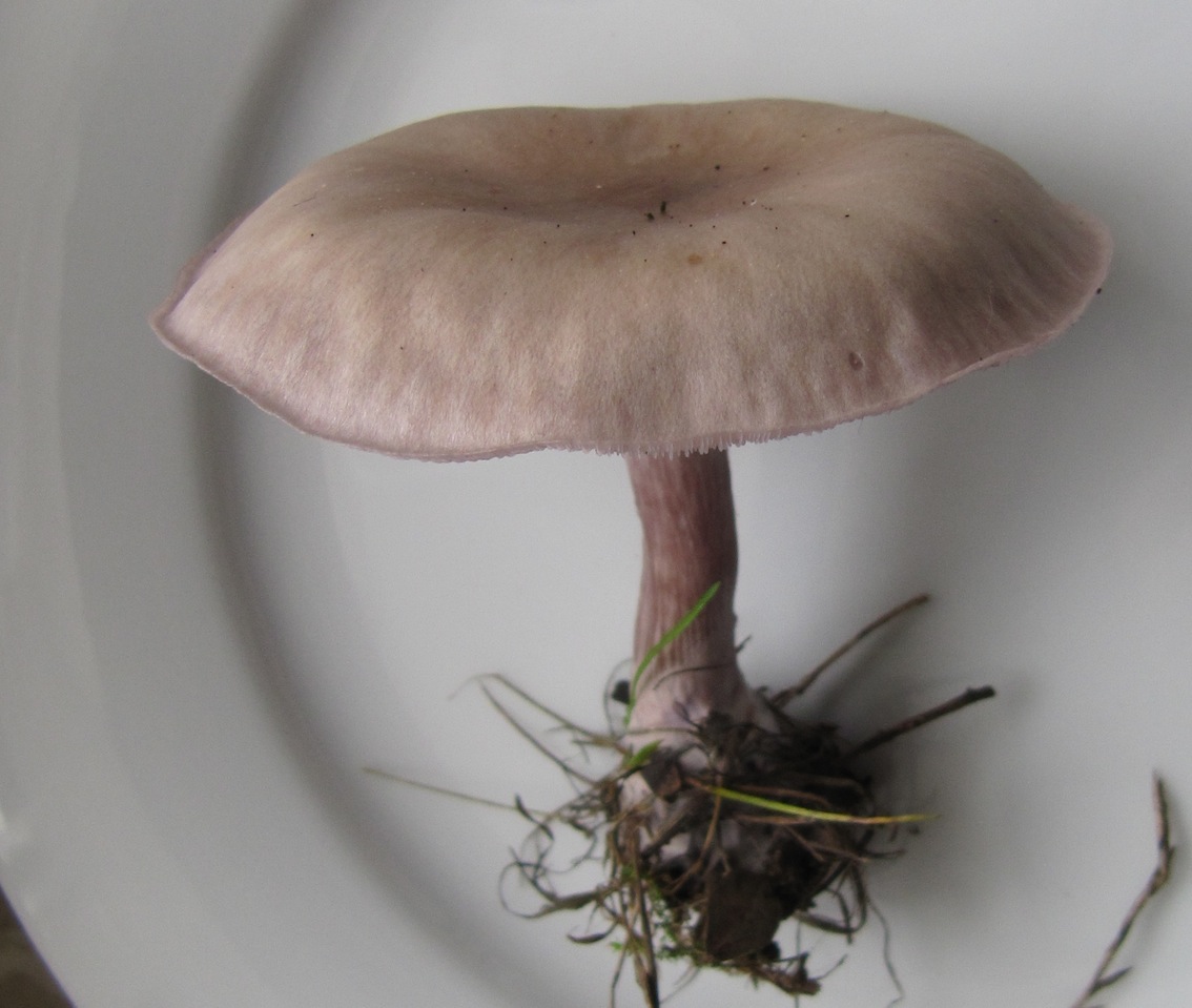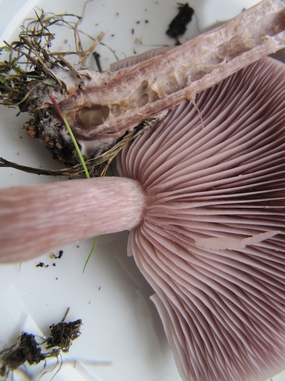 Stiel relativ zart, max. 1 cm dick, unten keulig verdickt. Der Hut ist ganz leicht zentral gebuckelt, trocken