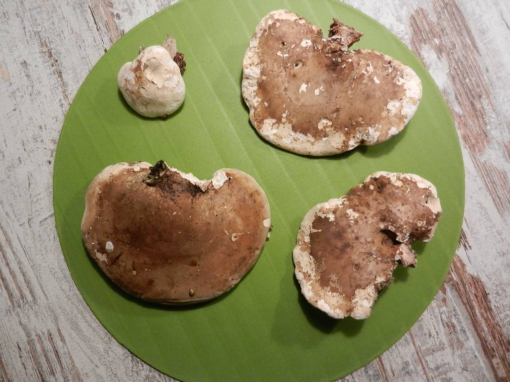 Diese Exemplare mutmaßlicher Birkenporlinge habe ich an unterschiedlichen Standorten an auf dem Boden liegenden Birkenstämmen gefunden.