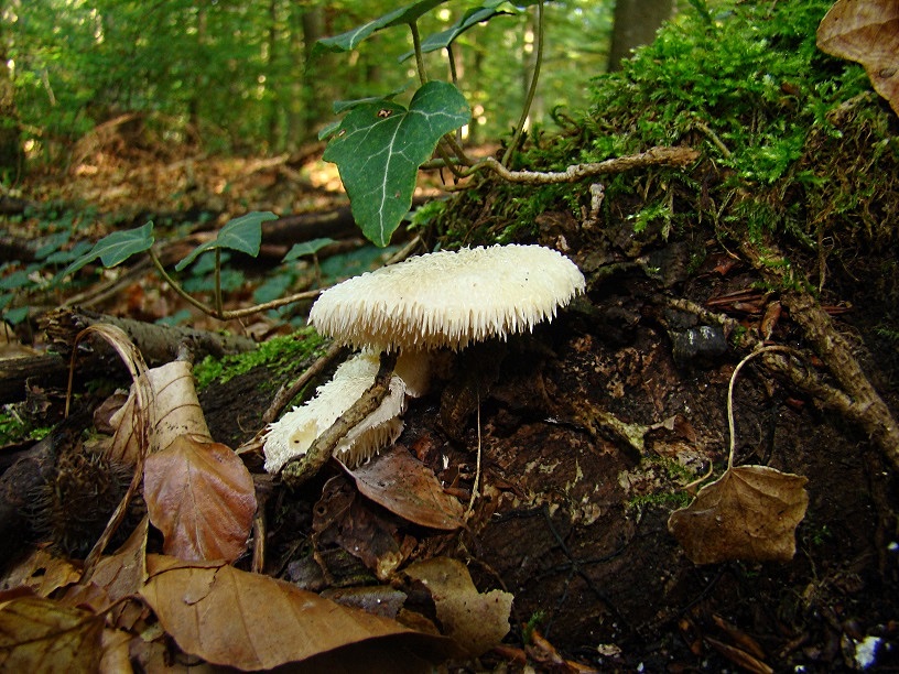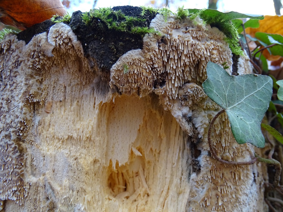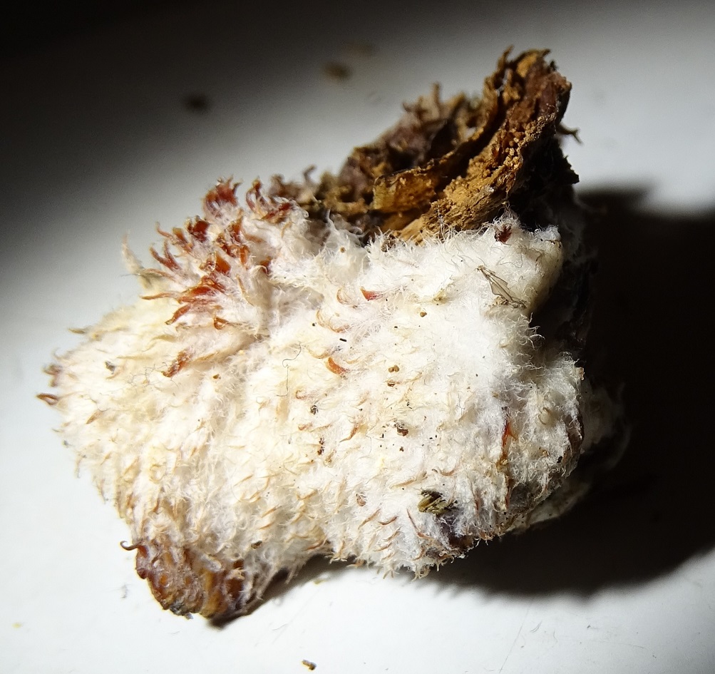 Nr. 3 - auch ebendort voriges Wocheende, auch an Fagus. Bestimmt kein Stachelbart, aber die wirklich haarige OS (kommt auf dem Schreibtischfoto besser als auf den Freilandfotos heraus) und die frisch beige bis rosa und jetzt getrocknet rötliche grubige US lassen ihn mindestens genauso iteressant erscheinen. Leider habe ich keine Idee ...