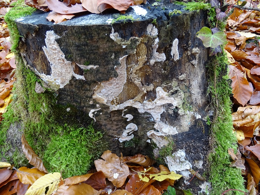 Das macht mich jetzt zwar nicht schlauer, es sieht für mich immer noch nicht wirklich wie Antrodia albida aus ich habe aber auch keine bessere Idee. Nun habe ich die Art noch an drei weiteren Fagus-Stümpfen gefunden (und hier habe ich ein relativ gutes Gefühl, dass es wirklich alles die gleiche Art ist), auch wohl in verschiedenen Altersstufen, evtl. bringt uns das ja noch auf eine zündende Idee: